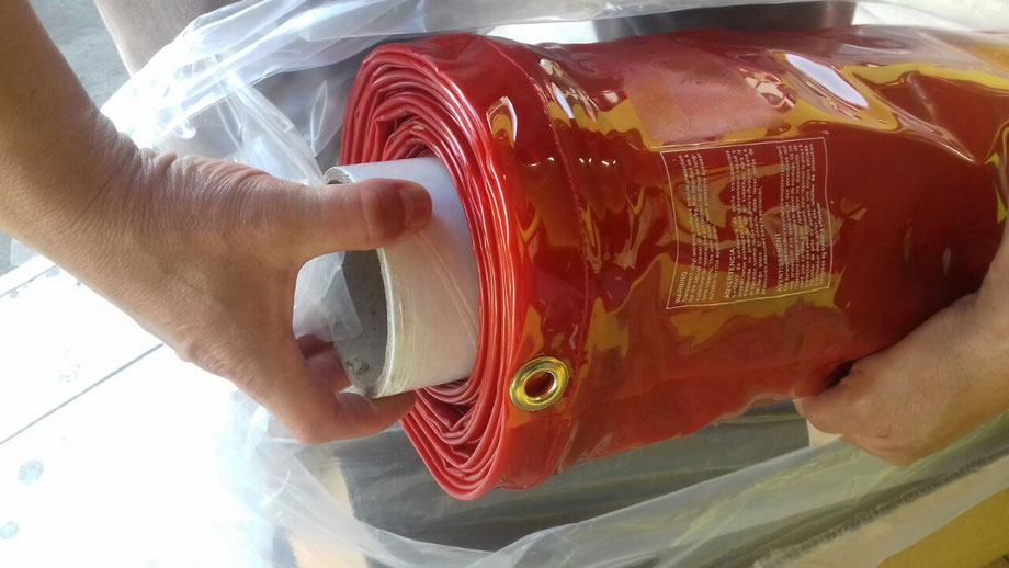 Plástico traslucido rojo (autoextinguible) (PVC plastificado), Nylon reforzado.