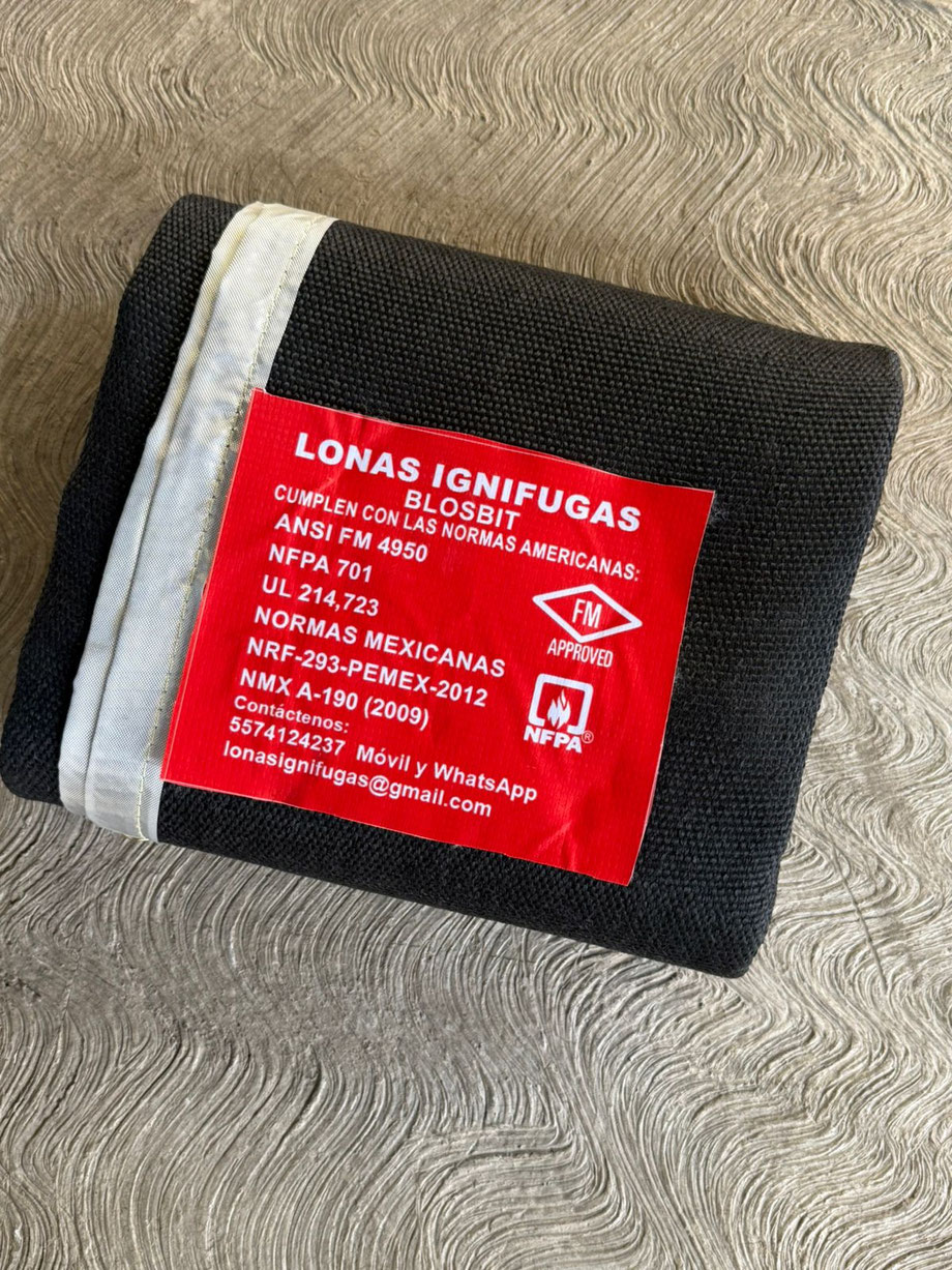 Lona ignifuga de importación, (Certificada), fabricada con material CERTIFICADO por Organismos Internacionales FM Approvals, FM Approved, CERTIFICACIÓN DE CALIDAD MUNDIAL.