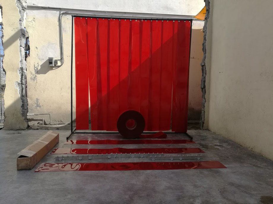 Hule traslucido rojo (auto extinguible) para cortinas de soldadura.